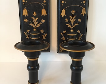Vintage Wall Sconces Candle Holders Black Metal Gold Candle Etsy